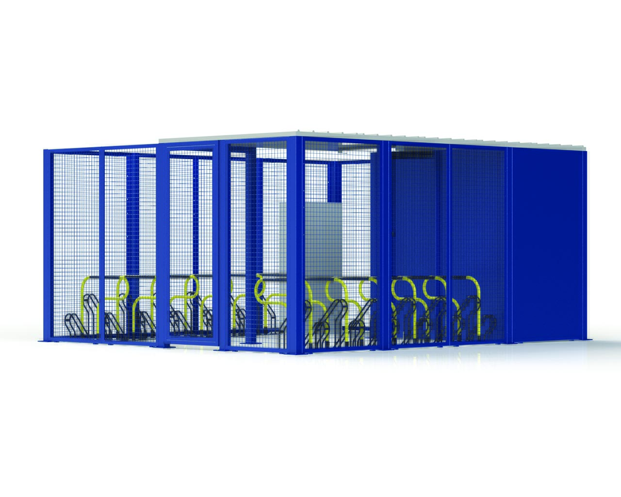 The Bike Parking Module UBC02 is a flexible and scalable solution for creating secure end of journey facilities without the need for major building works. Designed to occupy two car spaces, this modular system is ideal for sites requiring increased capacity while maintaining a compact footprint.