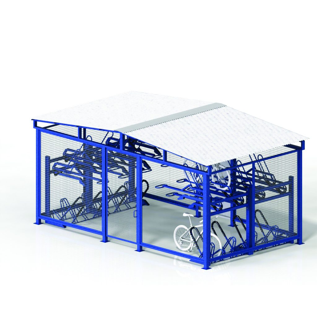 The Horizontal Double Bike Cage MHBC is a high-capacity bicycle storage solution designed with dual height racking to maximise space efficiency. It provides secure, organised parking while accommodating a greater number of bicycles within a compact footprint.