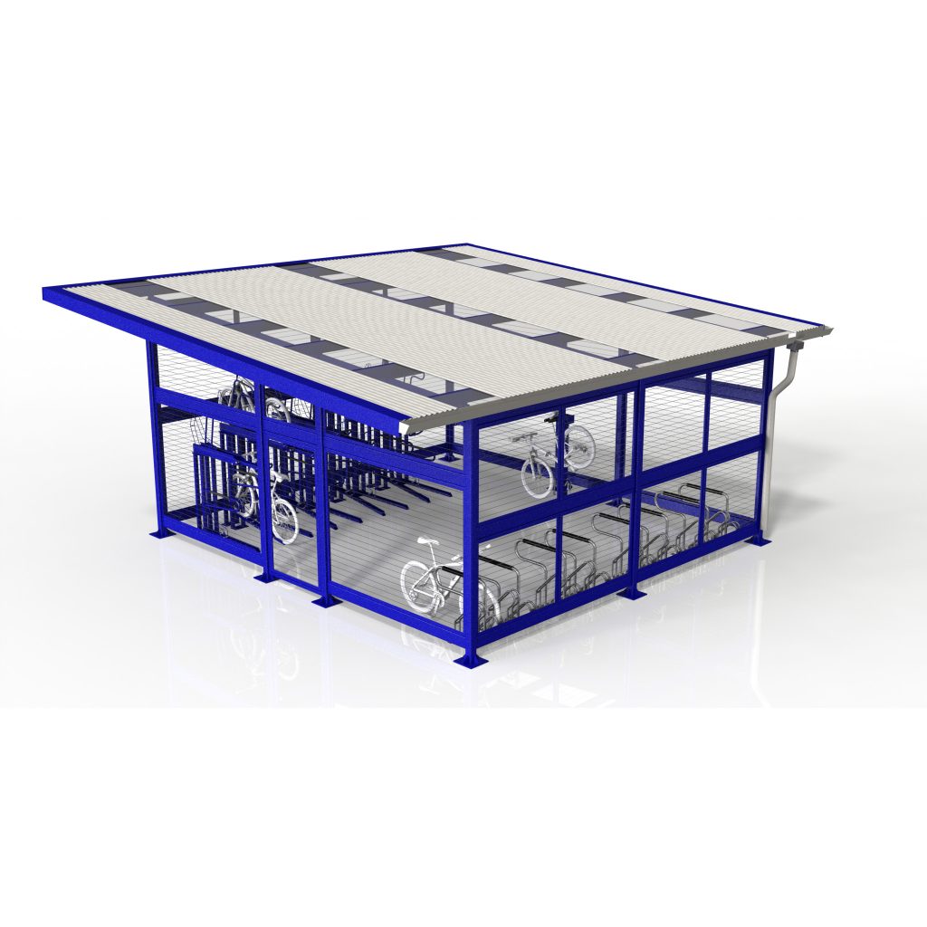 The Palm Cove Bike Cage is a modern and practical solution for secure bicycle storage, designed to provide a balance of accessibility, safety, and visual appeal. Its open design creates an inviting environment while maintaining a secure enclosure for cyclists.